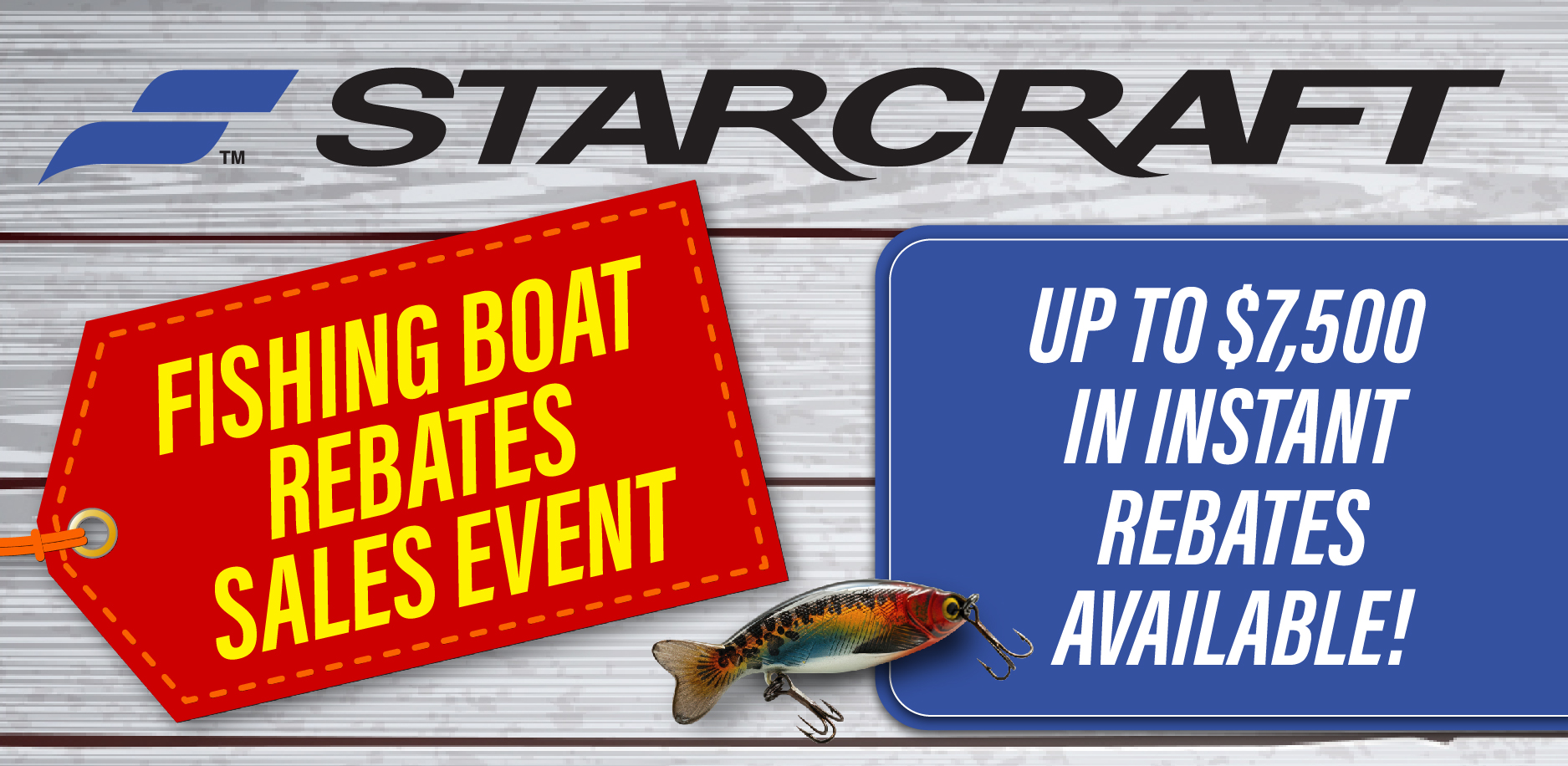 Just in time for fishing season...it's the Starcraft Fishing Boat Rebate Sale Event!  Take advantage of significant manufacturer rebates on all in-stock Starcraft fishing boats. With rebates up to $7500!